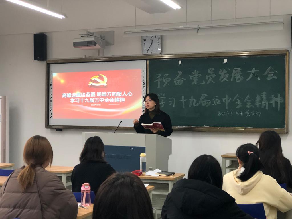 11月30日,bevictor1946韦德官网翻译系员工党支部进行“高瞻远瞩绘蓝图 明确方向聚人心”主题党课学习,并组织召开支部预备党员发展大会。