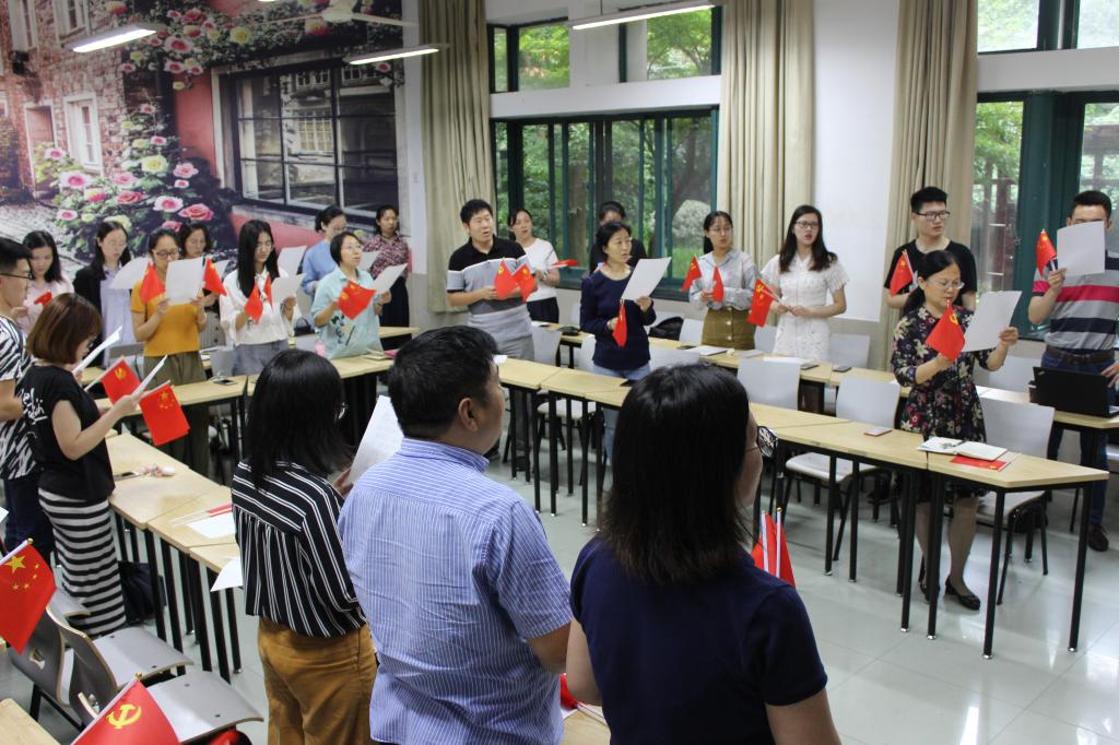 其后,全体与会党员,真挚而有力地唱响《我和我的祖国》,满腔热血,声声祝福,歌颂新时代,开启新篇章。