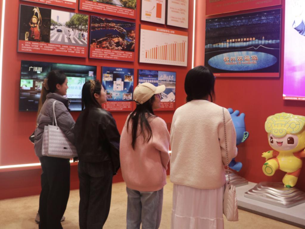 本次展览聚焦“八八战略”的提出、实施及其重大意义。在综合展区,党员们依次参观了“伟大擘画”“精彩蝶变”“勇立潮头”三大篇章,深入了解了“八八战略”的深刻内涵和意义。参观期间,党员们驻足端详、思绪万千,不时交流讨论,纷纷介绍自己的家乡在“八八战略”的指引下,开展的生动实践与取得的历史性成就,切身体会习近平新时代中国特色社会主义思想在浙江的实践探索历程。