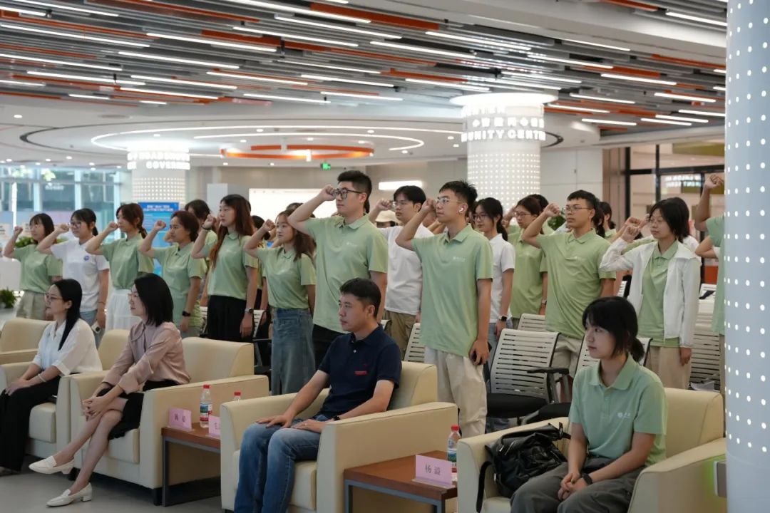 毛立峰向实践队授队旗,在实践队员工代表的带领下,全体队员庄严宣誓,他们将以专业所长服务社会,以青春热忱奉献时代,在充满光荣和梦想的新征程上,书写为中国式现代化挺膺担当的青春篇章。