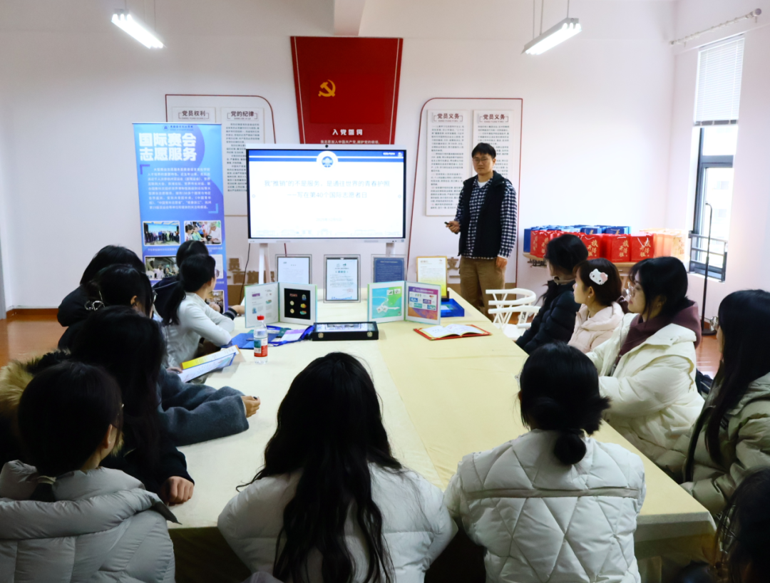 宣讲中,顾蒙用“三份签注”概括了国际志愿服务带给员工的核心竞争力:跨文化沟通的实战能力、讲好中国故事的原创生产力、精神传承的使命担当力。他分享了时任国际奥委会主席的巴赫先生在杭州亚运村和他交流并为他的南京青奥会志愿者证书签名的珍贵瞬间,勉励在场同学们,要充分把握在浙外的各类志愿服务契机,在真实的外交场景中淬炼家国情怀、拓宽全球视野,为服务新型国际关系不懈奋斗。