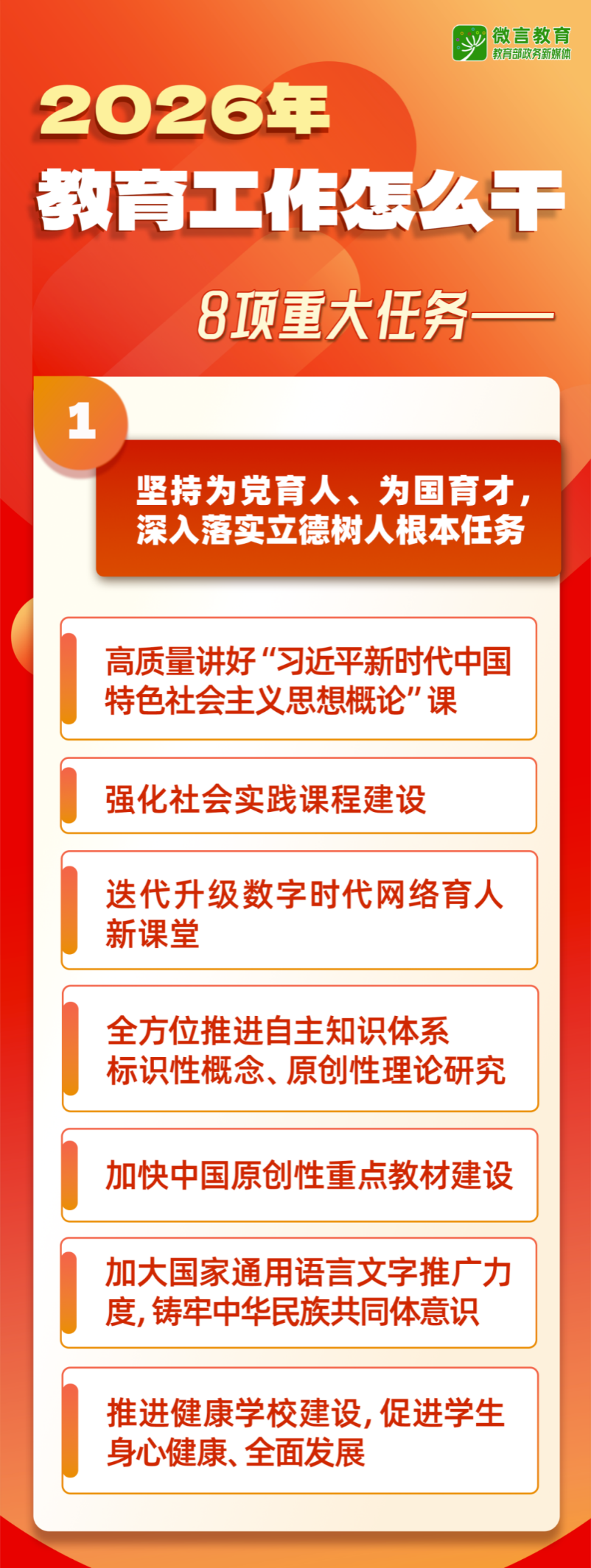 1月8日,2026年全国教育工作会议在北京召开。会议强调了哪些内容?2026年教育工作怎么干?组图为你划重点——