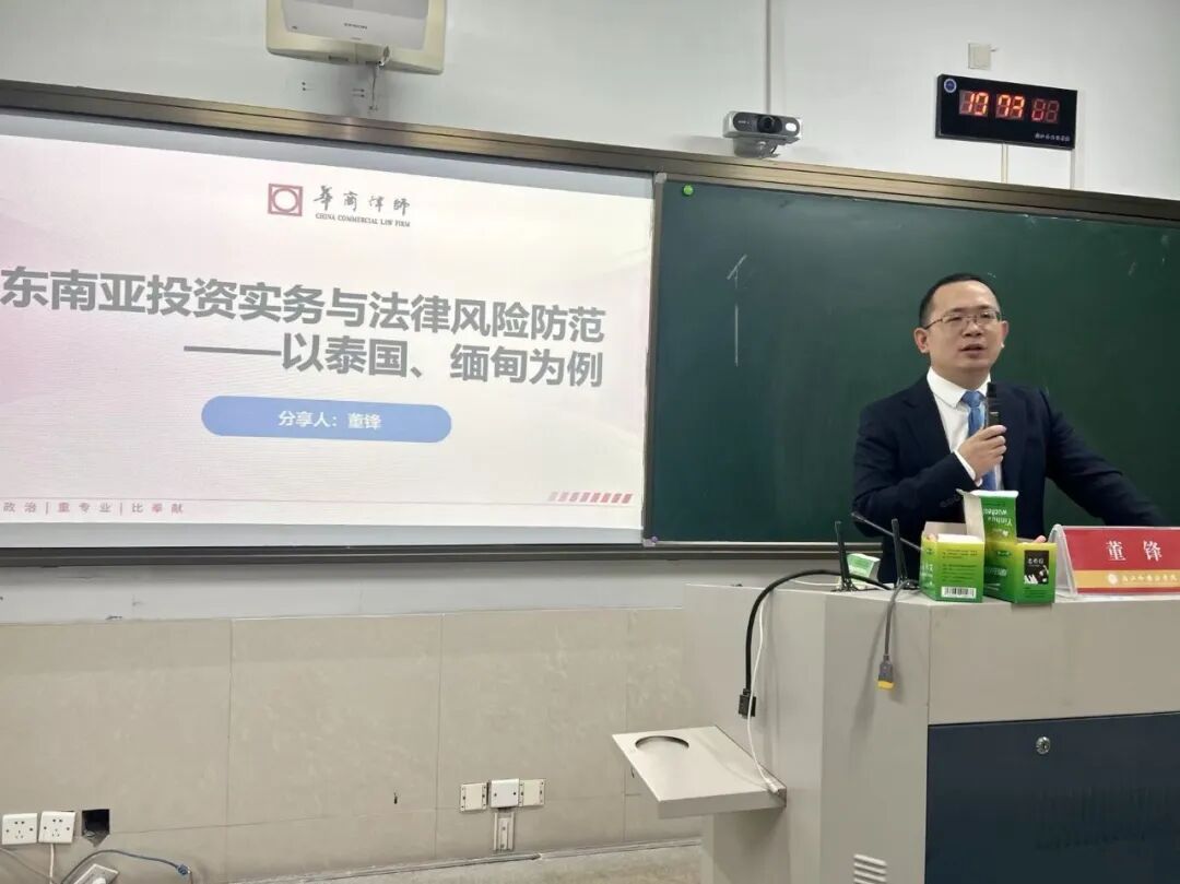 董锋聚焦泰国和缅甸两大东南亚市场,系统分析了投资环境与法律风险。他详细解读了泰国投资促进委员会(BOI)的优惠政策、公司注册流程和劳动用工制度,并剖析了缅甸的经济政策、关税制度及投资潜力,特别提示了当地政治环境和法律变动等风险因素。作为涉外法律服务专家,董锋兼任泰国仲裁中心仲裁员,并受聘多所高校实务导师。他深耕东南亚法律事务,2024年出版《东南亚投资法律风险防控实务》专著,曾获维护“一带一路”公民权益典型案例大奖,多次获杭州市律协表彰。