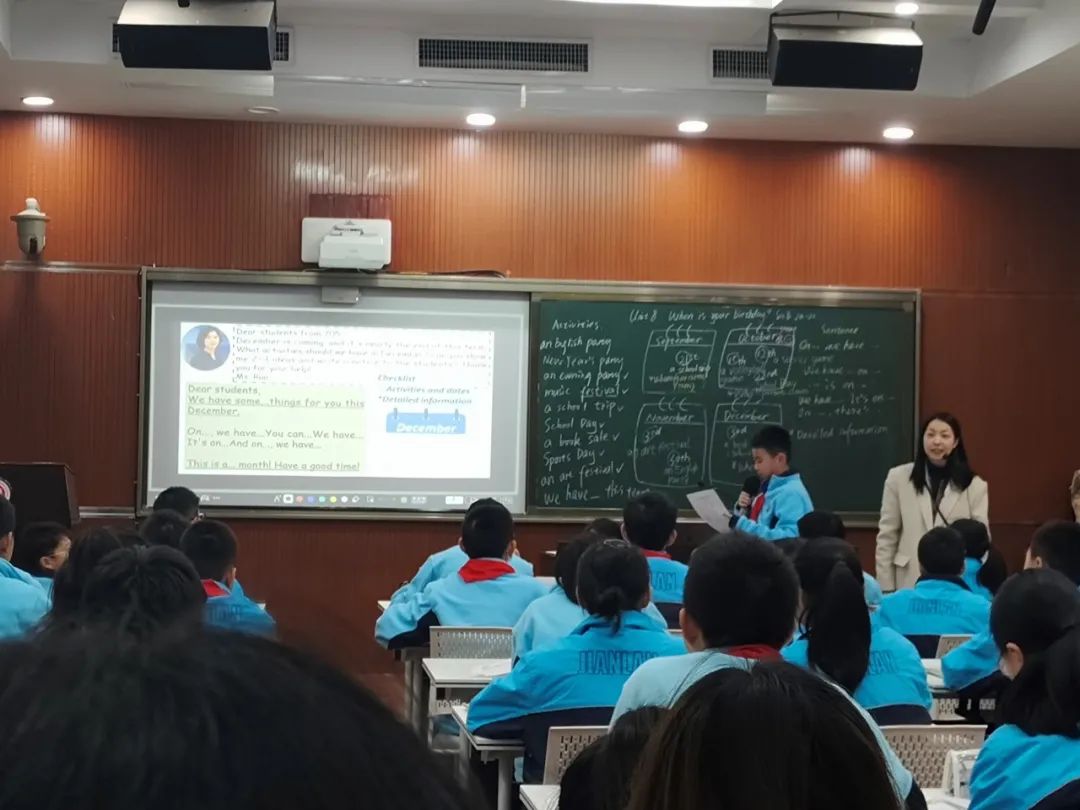 建兰中学副董事长李征带领英语教研组教师精心安排了2场教学展示。七年级授课教师夏舒娴和八年级授课教师沈宁先后围绕人教版教材内容When is your birthday?和课外拓展材料Sally or Paula?进行现场教学,并围绕教学设计进行说课。张春青和童红灯从教学基本功、教学理念、教学材料加工、教学设计、课堂氛围、教学效果等多个方面,高度评价了两节展示课,也指出了进一步提升的空间。陶伟要求听课师范生在复盘和分析两节课中发现自身不足,据此制定后续学习计划,全面提高作为准教师的综合素养。