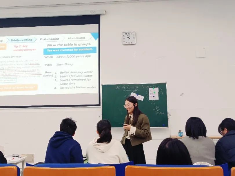 郑浩然、金可豪和赵淑敏三位选手呈现了风格迥异的读写课。郑浩然以米奇妙妙屋的奇妙咒语引入,课堂幽默风趣,节奏轻快。金可豪在板书设计上颇为巧妙,图文结合的形式让家乡的变迁一目了然。赵淑敏以茶为引,组织同学们参与分享自己对茶的了解,再由茶经里的“茶之为饮,发乎神农氏”引出文章的主人公神农,循循善诱,引导员工理解主题。