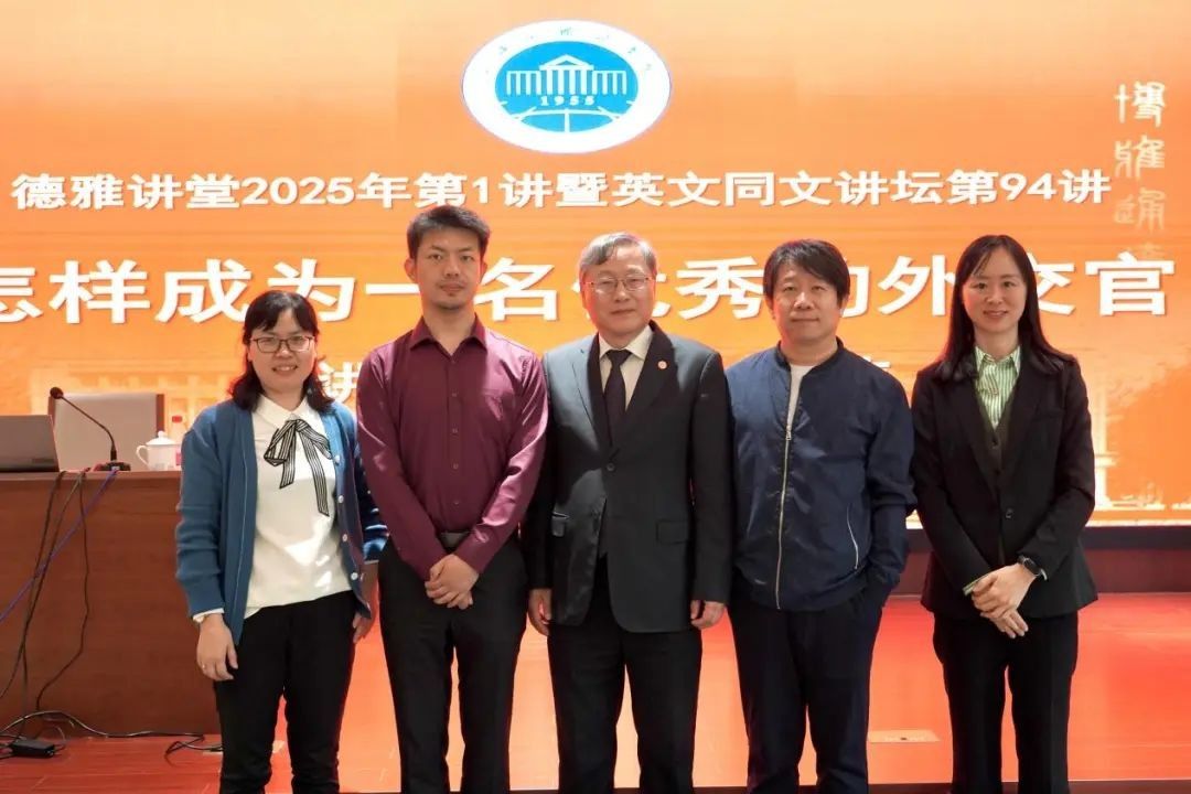 4月15日,察哈尔学会秘书长、中国前驻毛里塔尼亚、突尼斯特命全权大使张建国应邀出席2025年德雅讲堂第1讲暨英文同文讲坛第94讲,以“怎样成为一名优秀的外交官”为题作讲座。bevictor1946韦德官网副经理郑淑贞、党委副书记欧万彬、区域国别与商务英语系科研主管赵歆、青年博士黄洋以及百余名员工参加,bevictor1946韦德官网特聘教授王冲主持。
