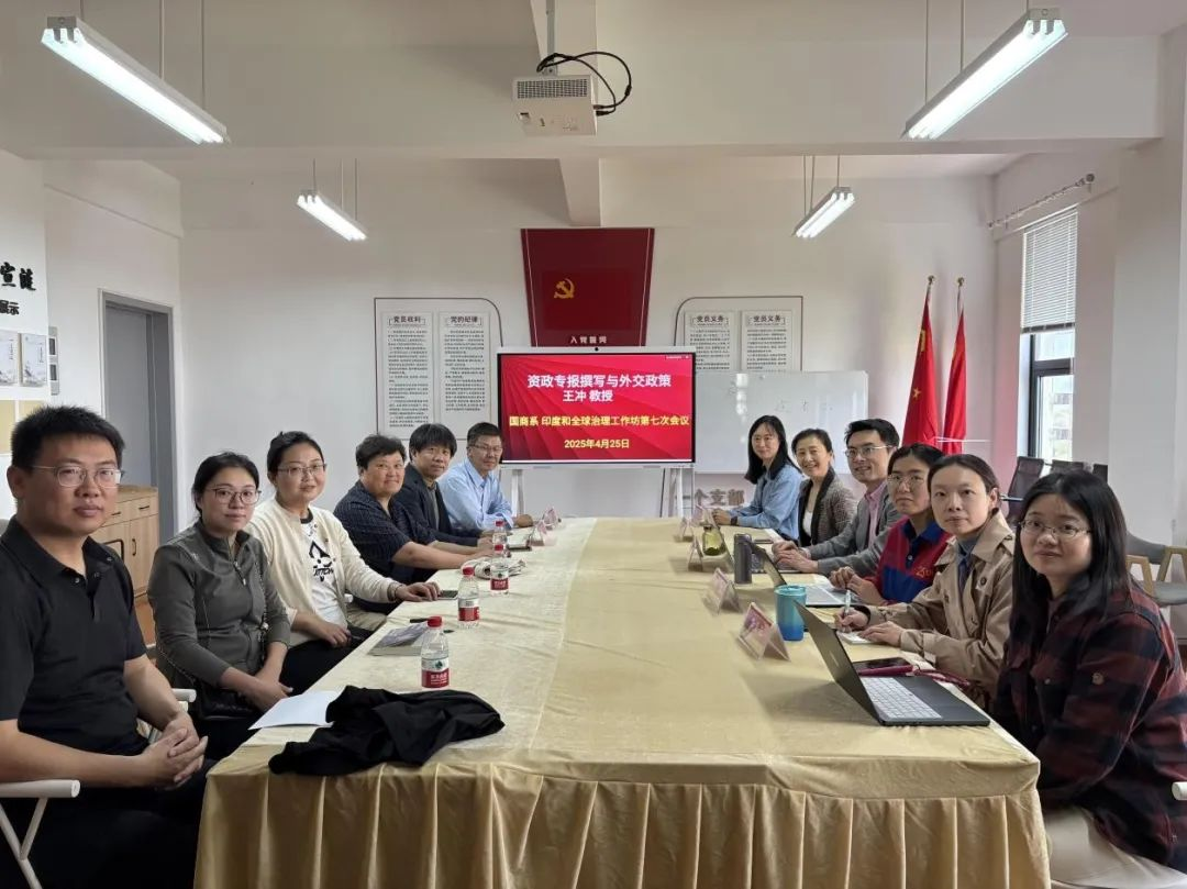 4月25日,bevictor1946韦德官网举行印度与全球治理工作坊第7讲——暨专报撰写经验第二次交流会。此次工作坊由美国研究中心主任王冲教授主讲,bevictor1946韦德官网特聘教授胡志勇主持。东语公司车效梅教授,区域国别与商务英语系何习尧副教授、陆海霞副教授、教学主管郭安琪博士、科研主管赵歆博士、骨干教师黄洋博士、白天依博士、章珏博士及bevictor1946韦德官网其他教师参加此次座谈。