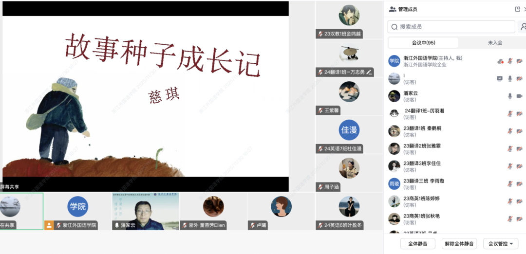 整场讲座真挚而富有哲思,展现出儿童文学跨越年龄的治愈力,也让在场师生见证:在故事里,我们重新发现童年、自然与生命之间柔软而坚韧的纽带。
