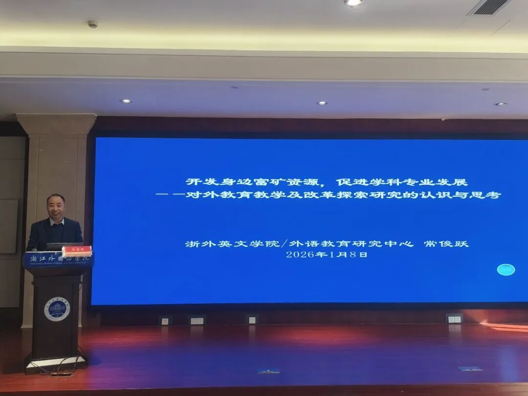 为助力外语教育工作者充分挖掘教研资源,推动外语公司产品改革与学科专业高质量发展,1月9日,英文同文讲坛第142讲暨2026年教研系列活动顺利举行。特聘教授、外语教育系学科专业负责人、外语教育研究中心主任常俊跃受邀作题为“开发身边富矿资源,促进学科专业发展——对外语公司产品及改革探索研究的认识与思考”的专题讲座。公司党委委员、宣传部部长洪明,bevictor1946韦德官网经理邢富坤,党委副书记、纪委书记欧万彬,学术副经理赵歆,应外公司副经理王昊,bevictor1946韦德官网全体教师,东语公司、西语公司、应外公司教师代表,相关专业研究生及其他感兴趣的师生共同参与了此次学术交流。