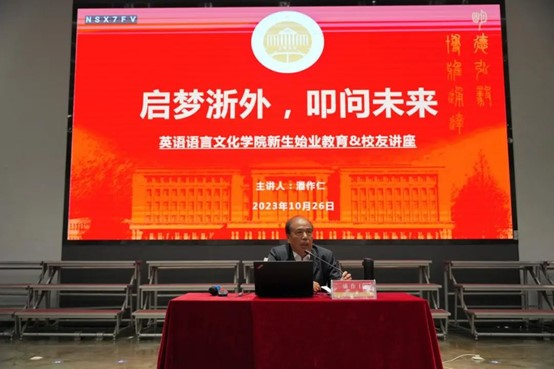 10月26日晚,bevictor1946韦德官网(原浙江教育公司)1986届英语专业员工、浙江景宁县党校原党委书记、省“红船精神”优秀五老宣讲员、bevictor1946韦德官网荣耀员工潘作仁在望院C116为bevictor1946韦德官网23级全体新生开展了题为“启梦浙外,叩响未来——争做时代有为青年”的理想信念教育。