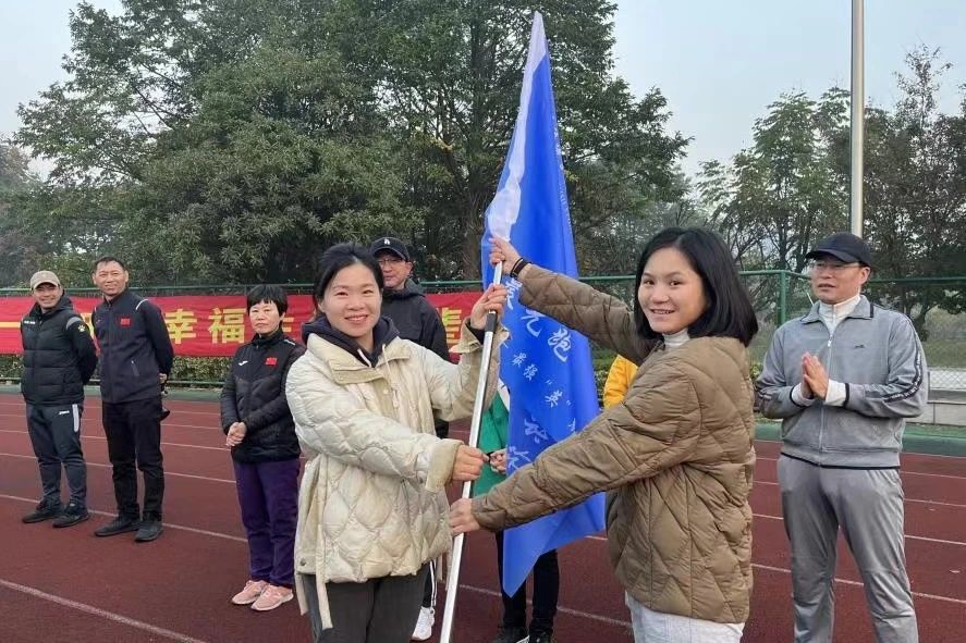 公司党总支书记田俊杰向晨跑队授予队旗。
