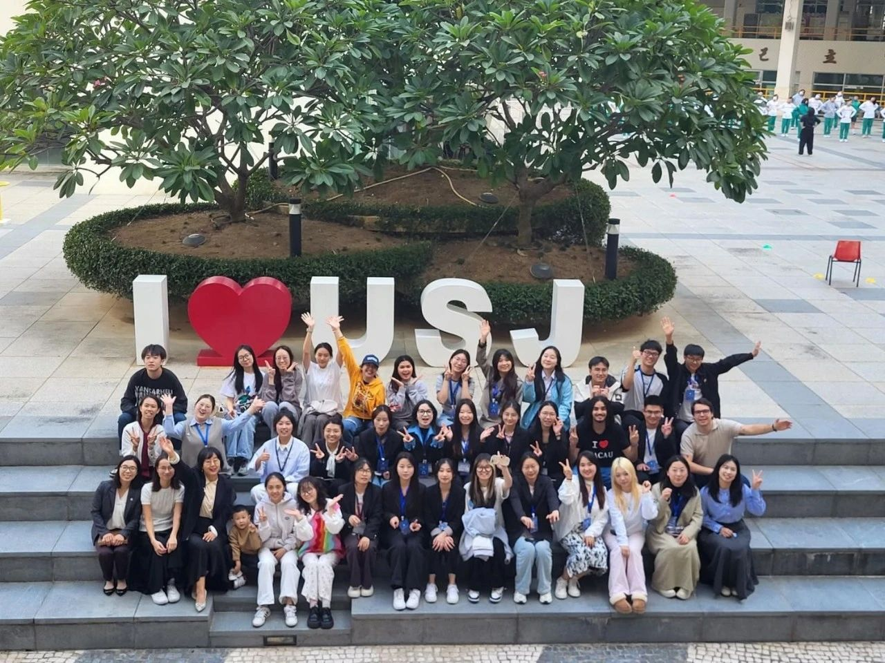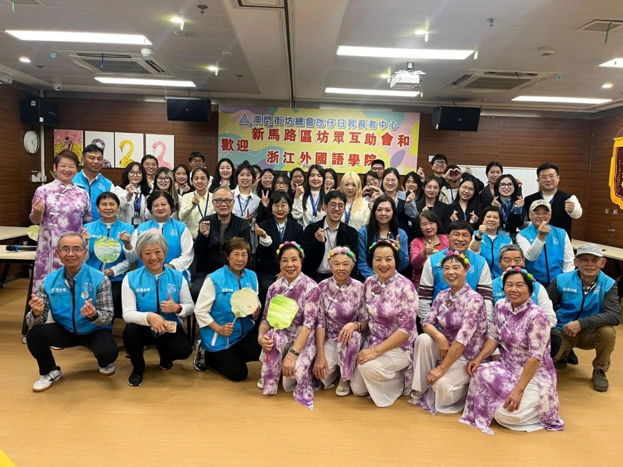 期间,团队拜访了澳门苏浙沪同乡会会长、中华全国妇女联合会常务委员贺定一女士,前往澳门凼仔日升长者中心与当地长者座谈交流。同学们将亲手制作的四十把非遗漆扇送予长者,以表达深深敬意与祝福,并演唱杭州亚运会主题歌曲《同爱同在》,展现青年学子的风采和对长者的关怀。