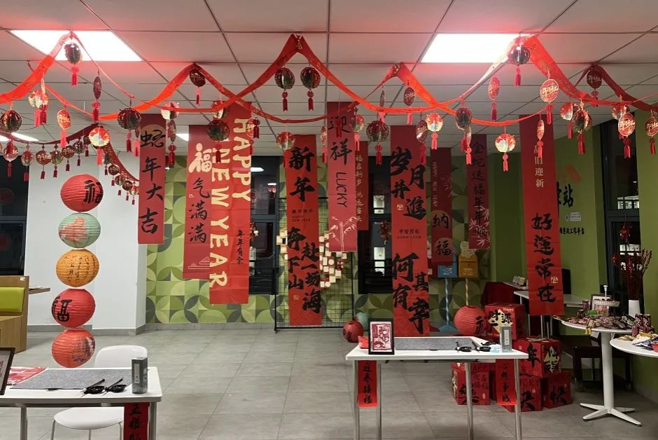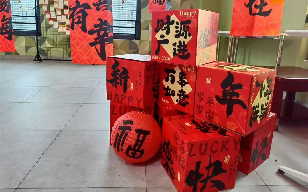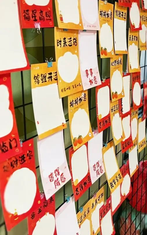 现场还有多彩活动若干,丰富新年气氛:书法专区备好笔墨纸砚,邀请老师导员,挥毫泼墨,为新年书写春联,传递新春祝福;手工创意角准备海量扭扭棒与辅助材料,大家制作成柿子、花生等小饰品,共同期盼来年有好事发生,增添新春生活乐趣,成品可带走;大家还可以领取心愿卡写下新年愿望,贴在墙上,激励大家在新的一年朝着目标前进。