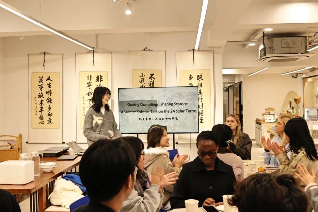 参与“冬至食饺,共话二十四节气”跨文化交际活动,我收获颇丰。在交流中,我们探讨二十四节气的起源与智慧,它作为古人依据太阳运行周期总结的历法,兼具实用与文化价值。主讲人也分享了她根据二十四节气所创作的诗词,大家都积极参与到诗词内涵的解读中来。同时,亲手包饺子的过程更是充满烟火气,热腾腾的饺子在寒冷的冬日给我们带来了一份慰藉。这次活动让我更深入理解了中华传统节气文化,也学会了如何用更鲜活的方式向他人讲述中国文化。
