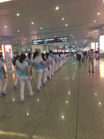 在杭州东站服务期间,我的工作就是站在安检口指路,尽量为旅客提供更周到的服务。每一次指路、每一次微笑、每一次“您好”都饱含我们发自内心的真诚。服务的时候遇到了参加B20的加拿大友人,当时附近没有接站的人,于是我便引导他去服务台并找到了接站人员。最开心的时刻莫过于看到他的微笑。除了外国友人,更多的是中国旅客,站在安检口为他们指路也是一种全新的体验,很多人都会向我们微笑,并竖起大拇指。一声声的“谢谢”似乎能够消除我们一天的疲劳,让我们每天都能精神饱满地上岗。