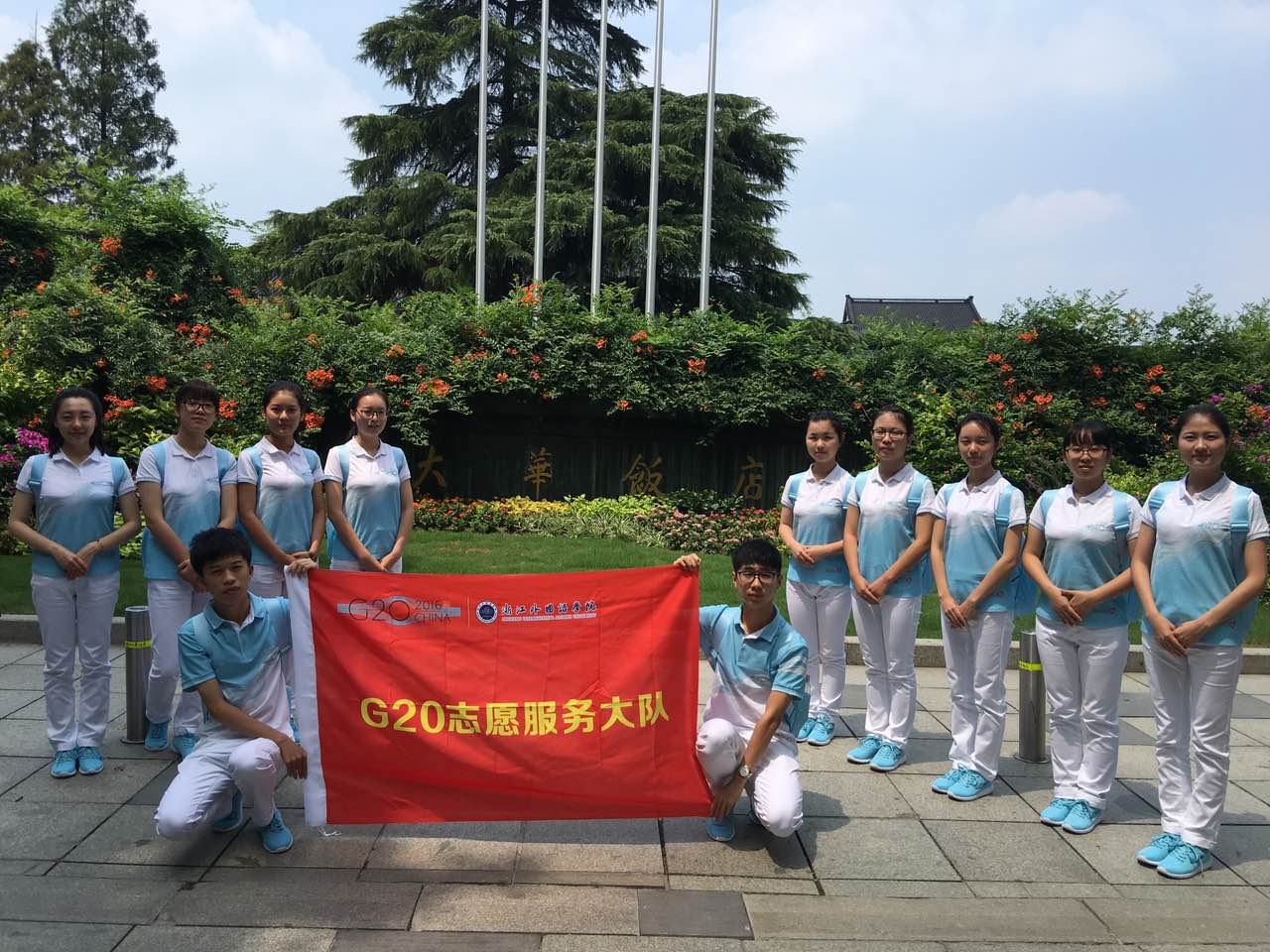 8月24日到9月6日,我在大华饭店,在西湖边,进行了两周的G20志愿服务。这些天,我与志愿者同伴朝夕相处,建立了友谊。在这次接待印度尼西亚代表团期间,印尼人的亲切友善给我留下了很好的印象。定点站立时,我与他们打招呼,他们会微笑着回复,包括总统也是一样。总统离开当天,在邱老师以及各方的努力下,我们全体志愿者争取到了与总统合影的机会。总统要离开时,我们与总统握手,他对每一个与他握手的人都用中文说了谢谢。这次G20让我邂逅了印尼人,了解了他们的风俗习惯,感受到了他们的真诚友好,与他们建立了友谊,这也是令我难以忘怀的。