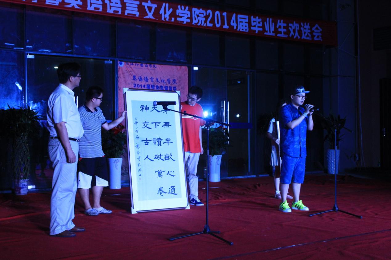 苦练书法18年,即将奔赴香港中文大学攻读研究生的2014届英语翻译专业毕业生谢弘,向恩师和公司赠送书法作品。