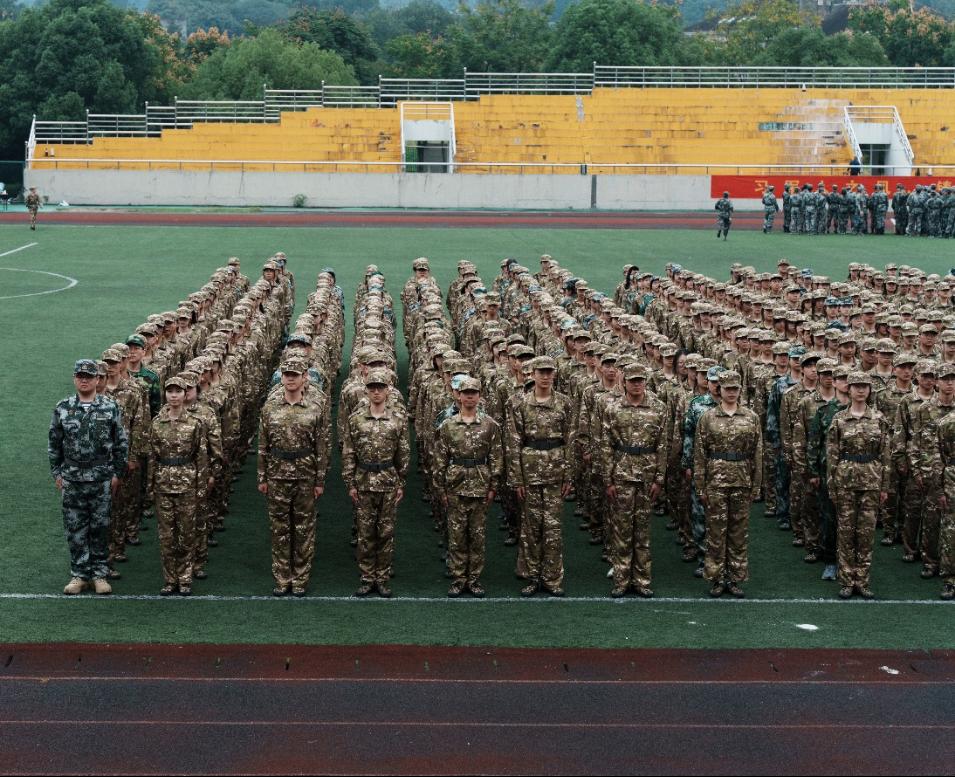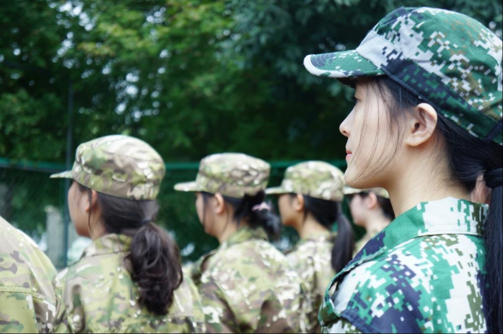 训练场上的你们,戎装加身,英姿讽爽。端腿端手的动作整齐划一,即使汗流浃背,也纹丝不动,因为一人失误,将换来全体加练的局面。高强度的训练十分艰辛,却也让我们的动作更加精进,众心更为团结。一天下来,虽然身体酸痛,却倍感自豪。第二关顺利通过!