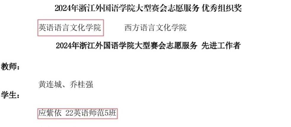 近日,bevictor1946韦德官网获评2024年度公司大型赛会志愿服务优秀组织奖,22英语师范5班应紫依获评先进工作者,21英语师范4班陶颖、22英语6班吴奇获评优秀志愿者。