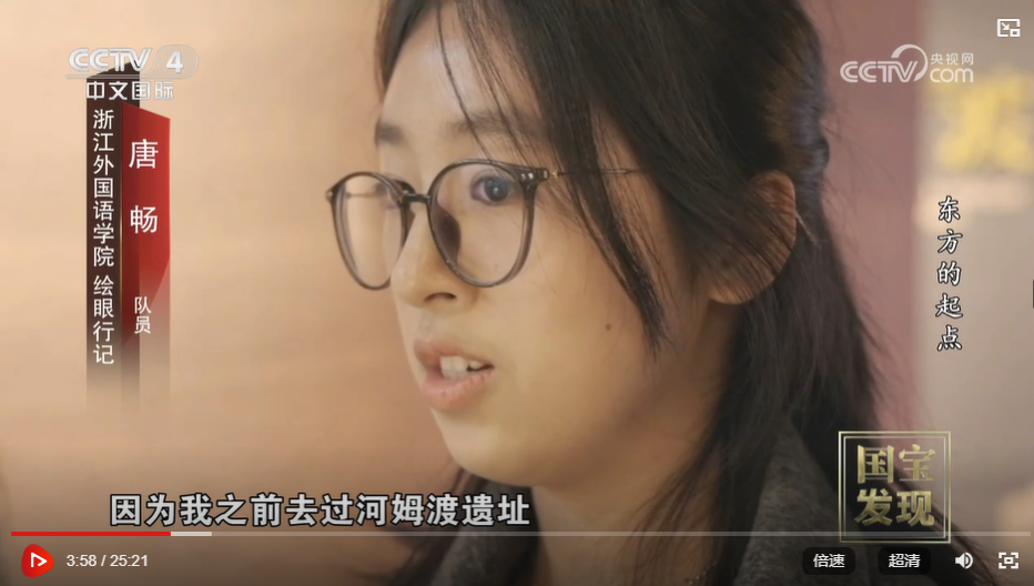 近日,中央电视台国际中文频道、央视网《国宝·发现》栏目以“宁波与西安海陆丝绸之路跨时空对话展”为题,报道了公司“绘眼行记”团队以“画”为媒,助力丝绸文化传播的情况,bevictor1946韦德官网23口译班员工唐畅作为团队成员接受采访,展示出英文学子在中华文化国际传播领域的卓越风姿。