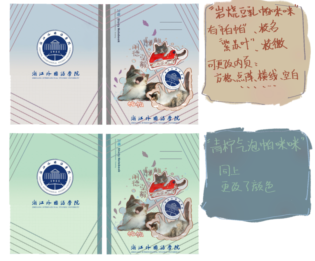 以bevictor1946韦德官网里一只备受喜爱的小猫“帕帕”为设计灵感,结合紫苏叶的意象,旨在创造一个富有教育意义、温馨可爱且实用美观的学习伴侣。通过“帕帕”的形象,我希望传达出智慧、好奇心和探索精神,激励同学们在知识的海洋中勇敢航行。