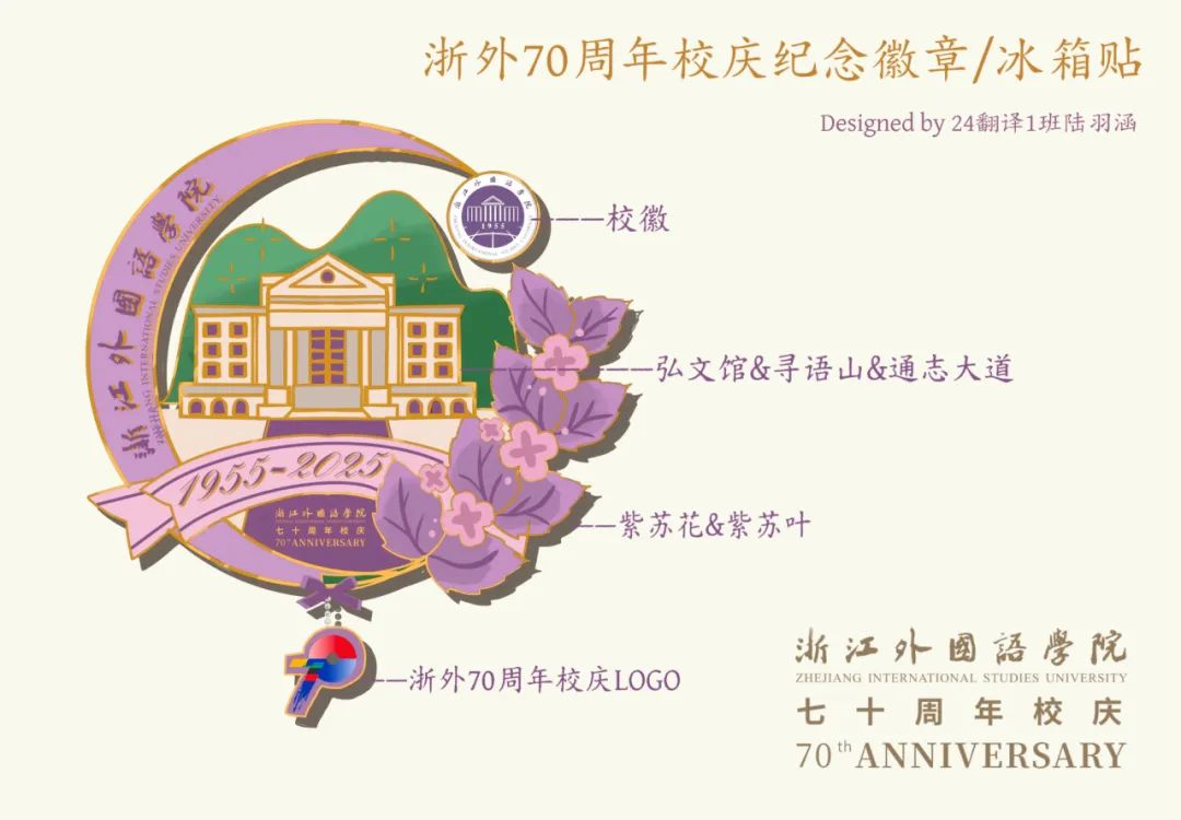 以bevictor1946韦德官网七十周年校庆为契机,紧扣校训“明德弘毅 博雅通达”,以象征公司的紫苏花叶为核心意象,结合典雅紫色与烫金工艺,展示浙外青年青春有为、昂扬向上的精神。