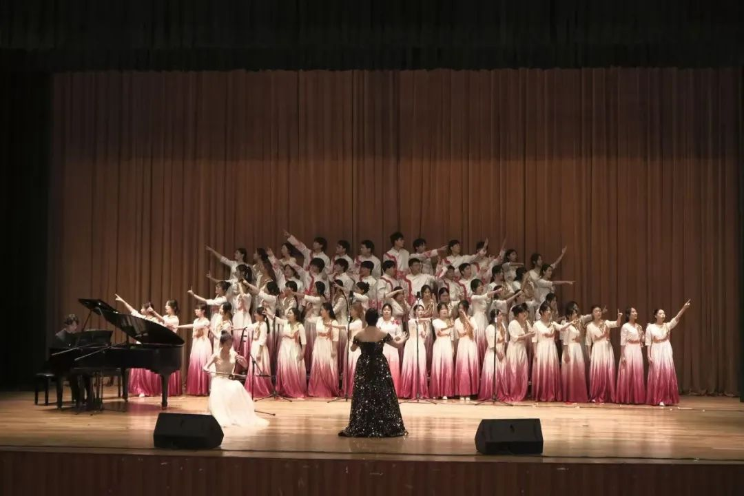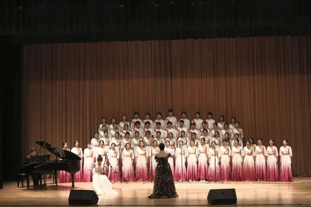 星河低垂,《歌唱祖国》响彻礼堂。“五星红旗迎风飘扬”的铿锵,仿佛裹挟着南湖红船的百年回响;“英雄的人民站起来了”的浑厚,奔涌着江河万里的血脉。高低声部交织,不仅唱尽五千年文明的深厚积淀,也映照新时代青年接续奋斗的坚定决心。