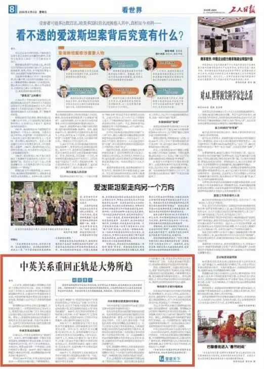 文章指出,英国首相斯塔默于2026年1月31日结束的为期4天的访华之旅,结束了英国领导人长达8年的访华空白期,期间中英就发展长期稳定的全面战略伙伴关系、恢复高级别安全对话、便利人员往来与经贸合作等达成多项重要协议,标志着两国关系从近年来的低谷状态重回正轨,成为改善中英关系的重要里程碑;同时,两国关系的长远健康发展仍需双方持续相向而行,不仅需要政府层面拓展深化合作,更需大力促进两国民间交流与理解,夯实友好的社会根基,应在客观看待当前关系回暖积极意义的同时保持清醒认识,推动中英关系在重回正轨的基础上行稳致远。