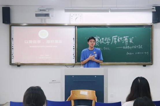 “以赛促学,厚积薄发”考研经验分享会由2022届商务英语专业员工、华东师范大学英语笔译在读研究生李致远担任主讲。他围绕本科阶段学习和考研备考两方面,介绍了自己学习锻炼、参加演讲辩论队和商务竞赛等经历,鼓励同学们多参与课外竞赛,以赛促学,全面提高自己的专业水平。对于考研备考,他建议大家注意分阶段备考,即时放松,把握好自己的节奏,循序渐进。
