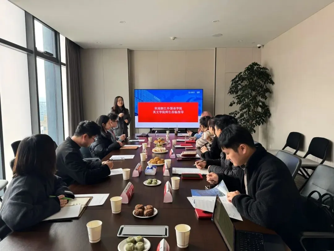 史维芳介绍了新通教育集团的发展情况。她表示,新通是一个重视年轻人、给予年轻人广阔发展空间的平台。他们始终相信,年轻人只要有梦想、脚踏实地,就能获得展现自我的机会,实现个人价值与职业成长的飞跃。同时,她也对英文学子能吃苦、肯思考的精神给予高度肯定。她期待浙外为企业输送靠谱、高素养的员工,在实习过程中提前感受就业的氛围,帮助年轻人快速成长,提升自身竞争力,为未来的职业生涯打下坚实的基础。