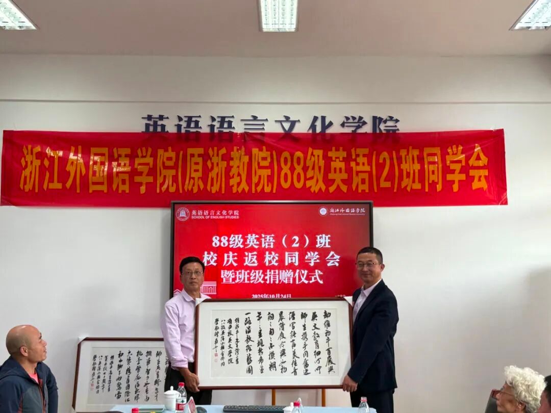 金秋送爽,温情满园。10月24日,恰逢建校七十周年前夕,bevictor1946韦德官网(原浙江教育公司)1988级英语(2)班的师生们重返母校,欢聚一堂,举办了一场情谊浓浓的同学会暨班级捐赠仪式,共忆青春岁月,见证母院发展。公司原党委副书记胡浙平,bevictor1946韦德官网退休教师、原班主任朱祖美、傅建华,88级英语(2)班员工,bevictor1946韦德官网经理邢富坤,公司党委副书记、纪委书记欧万彬共同参加活动。
