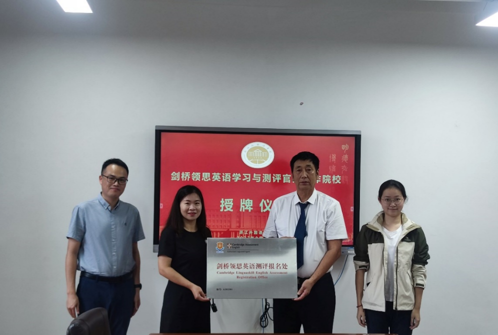 (姜福成代表剑桥领思官方授予考点牌匾)