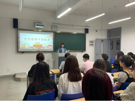 英语师范系员工党支部邀请考取国(境)外研究生的党员朱逸斓以“在海外讲好中国故事”为题,为支部全体员工党员讲授主题党课。她结合习近平总书记关于文化自信的重要论述,表示自己将不断增强文化自信,在留学过程中认真讲好中国故事、传递好中国声音。听完党课,同学们纷纷表示,将充分利用在党员发展过程中汲取到的理论知识和实践经验,学习宣传党的二十大精神,在新征程上踔厉奋发、勇毅前行。