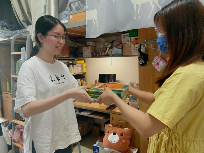 为充分发挥党员的先锋模范作用,积极丰富公司“‘研’料盒升学助力计划”的形式和内容,商务英语系员工党支部中考研成功的员工党员走进寝室,与学弟学妹交流考研经验,并向他们赠送书籍资料,鼓励他们传承发扬党员的模范作用,以新时代党员的标准严格要求自我,以实际行动迎接党的二十大胜利召开。