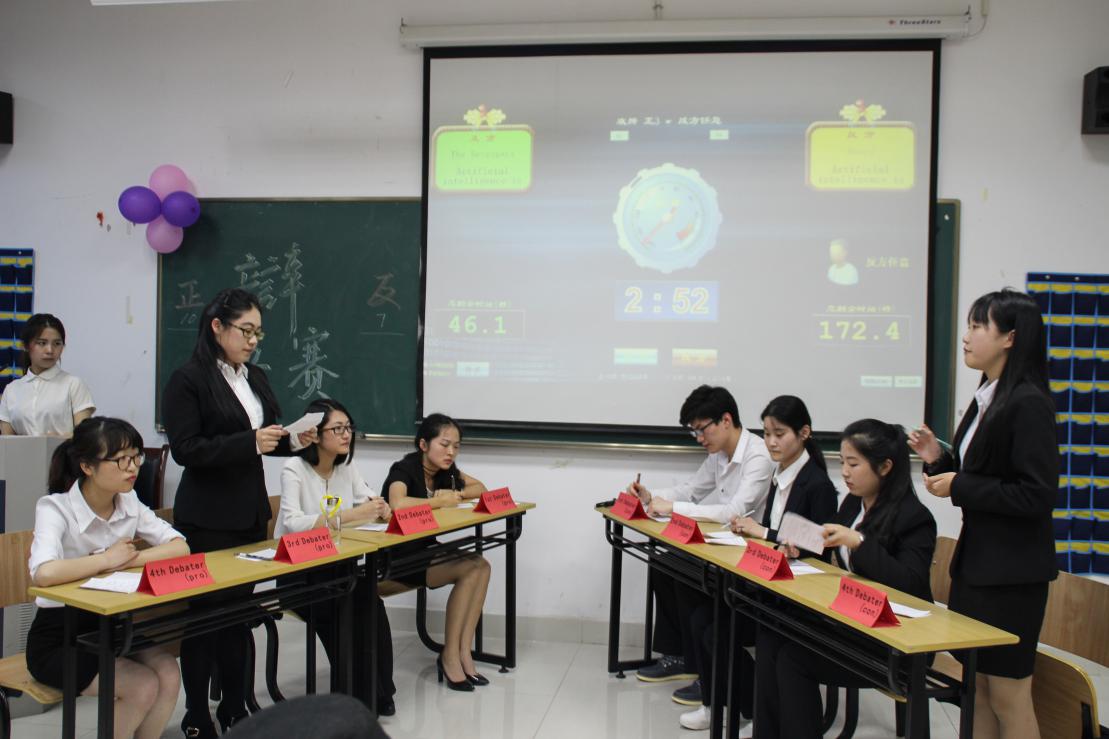 决赛共分为两场,分别以“人工智能对人类来说是否是一种存在性威胁?”和“性教育是否应该进入中学课堂?”为辩题。辩论过程中,一辩立论简明扼要,二辩立证有理有据,三辩提问言辞犀利,四辩总结慷慨激昂。无论是激烈的攻辩还是精彩的自由辩论环节,辩手们都有条不紊,巧妙灵活地应对对手的步步紧逼。其中,在关于“性教育是否应该进入中学课堂?”的辩论中,辩手们更以精准的数据说明了我国性教育现状,这些数据真实可靠并具有说服力。