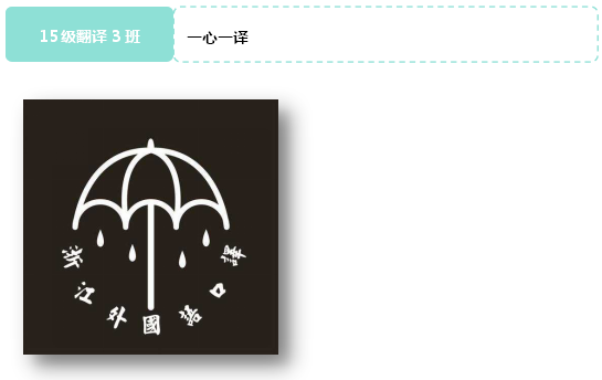 班徽介绍:班徽的整体是一个“译”字,代表我们的专业。右边的一竖,大气潇洒,形似一支笔,这是我们工作的伙伴;又形似一支燃烧的烛火,犹如我们对未来对这个专业对我们的选择,不灭的希望。围绕着这一竖的笔画,如同一条蜿蜒的道路,意蕴,追梦路上的艰难险阻;上下分为两色——渐变的黑,代表,迷惘的逐步消逝;金黄,代表,前途的光明。金黄的部分在黑色部分的基础上大幅度加宽,表示前景的豁然开朗。左上角的一点,为烈日。意蕴,希望、理想,照亮了世界。左下角言字旁的下部分,犹如一个数字“2”,代表翻译2班,又如一条丝带,象征着翻译2班的团结,每个人的心紧密相连;丝带延伸“译”字左边这条路的起点到未知的远处,同时丝带多象征美好,这是对大家在追梦路上的美好祝愿。