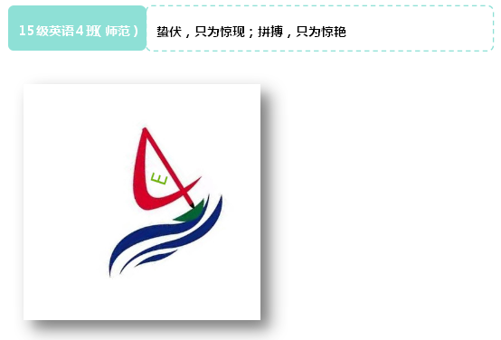 班徽最上面红色部分的大致形态是数字“4”,代表着我们是英师4班的。另外,把“4”的一竖变形成了一支笔来表示我们时时不忘刻苦学习;