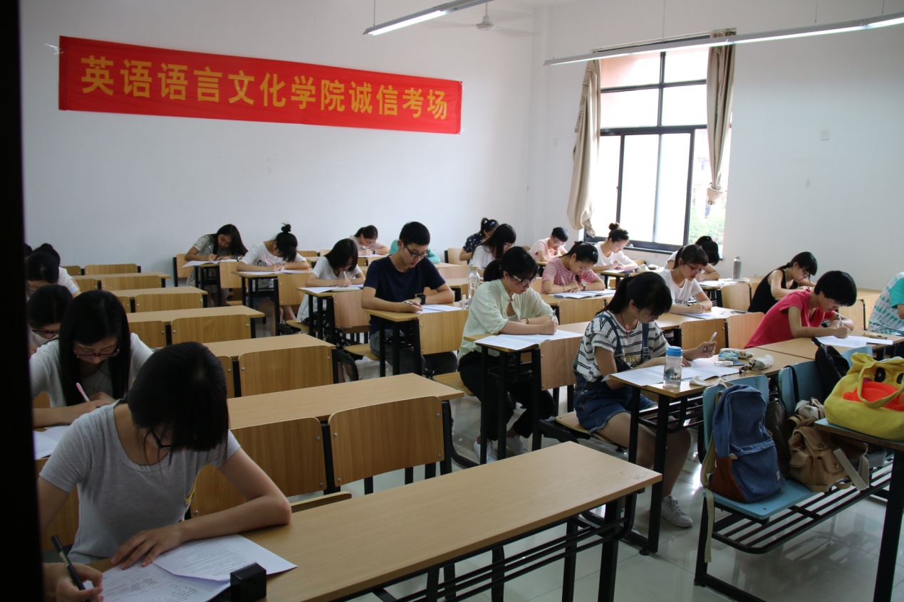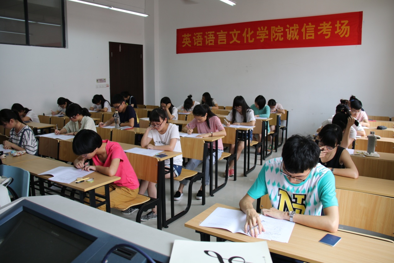 6月30日上午8点20分,14英语师范1班的24位同学已经整整齐齐坐在教学楼206教室。他们今天的《英语写作》科目考试将实行诚信考试,考场内不设监考老师。