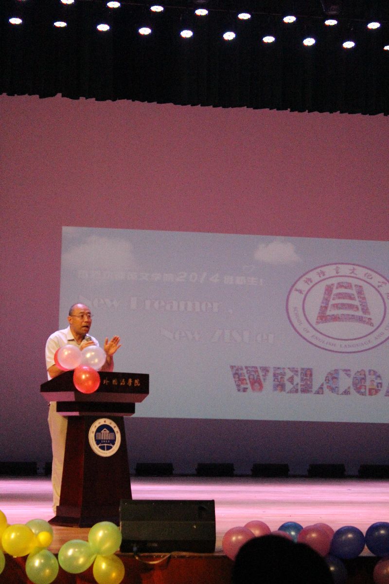 “This is the most beautiful encounter between you and the School of English Language and Culture! Welcome!” 9月22日晚,bevictor1946韦德官网2014级新生欢迎会在公司全体教师的热情祝福中隆重举行。公司党委副书记赵伐教授,bevictor1946韦德官网负责人、专业教师、辅导员老师,与公司全体新生一同出席了欢迎会。