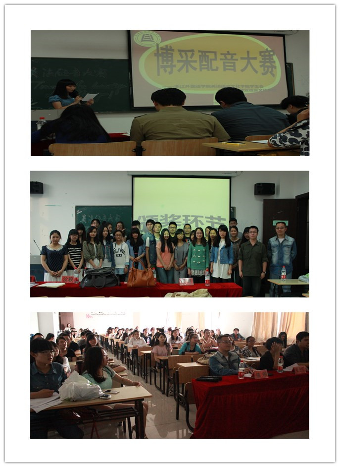 经过层层激烈的角逐,共有五支优秀的英文组队伍以及三支法文组队伍进入决赛。从科幻片到喜剧片再到教育片,选手们运用娴熟的配音技巧呈现出精彩的配音效果,让现场掌声不断。评委老师针对性的点评更是让同学们受益匪浅。经过激烈的竞争,最后英文队Flu组与法语队BROVA组获得冠军。