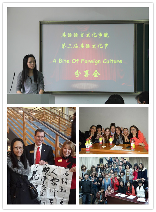 赴威斯康星大学河城校区、美国华盛本大学、美国中阿肯色大学、台湾屏东大学和暑期赴美带薪实习的6名员工代表从语言学习、项目申请、课程选择、文化差异等方面分享了他们交流学习的感受和收获。此外,来自商务英语实验班的员工代表介绍了他们与美国18名“体验中国”职工一起学习生活的经历。他们通过丰富的图文和视频将境外学习、生活情况栩栩如生地展现在大家眼前,其间穿插了趣味问答环节,使听众在活跃的氛围中加深了对不同文化的了解。