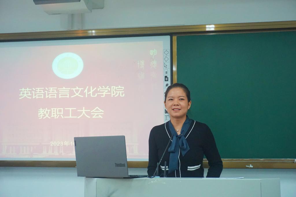 教学副经理陶伟着重强调了开学后教学工作重要事项,主要围绕日常教学纪律、课堂管理规范、教学创新意识提升、基层教研活动等方面进行部署。他针对英语(师范)专业认证整改,翻译专业和商务英语专业新文科认证学期重点工作,以及毕业论文、摸底考试、毕业实习等近期工作事项做出具体安排。