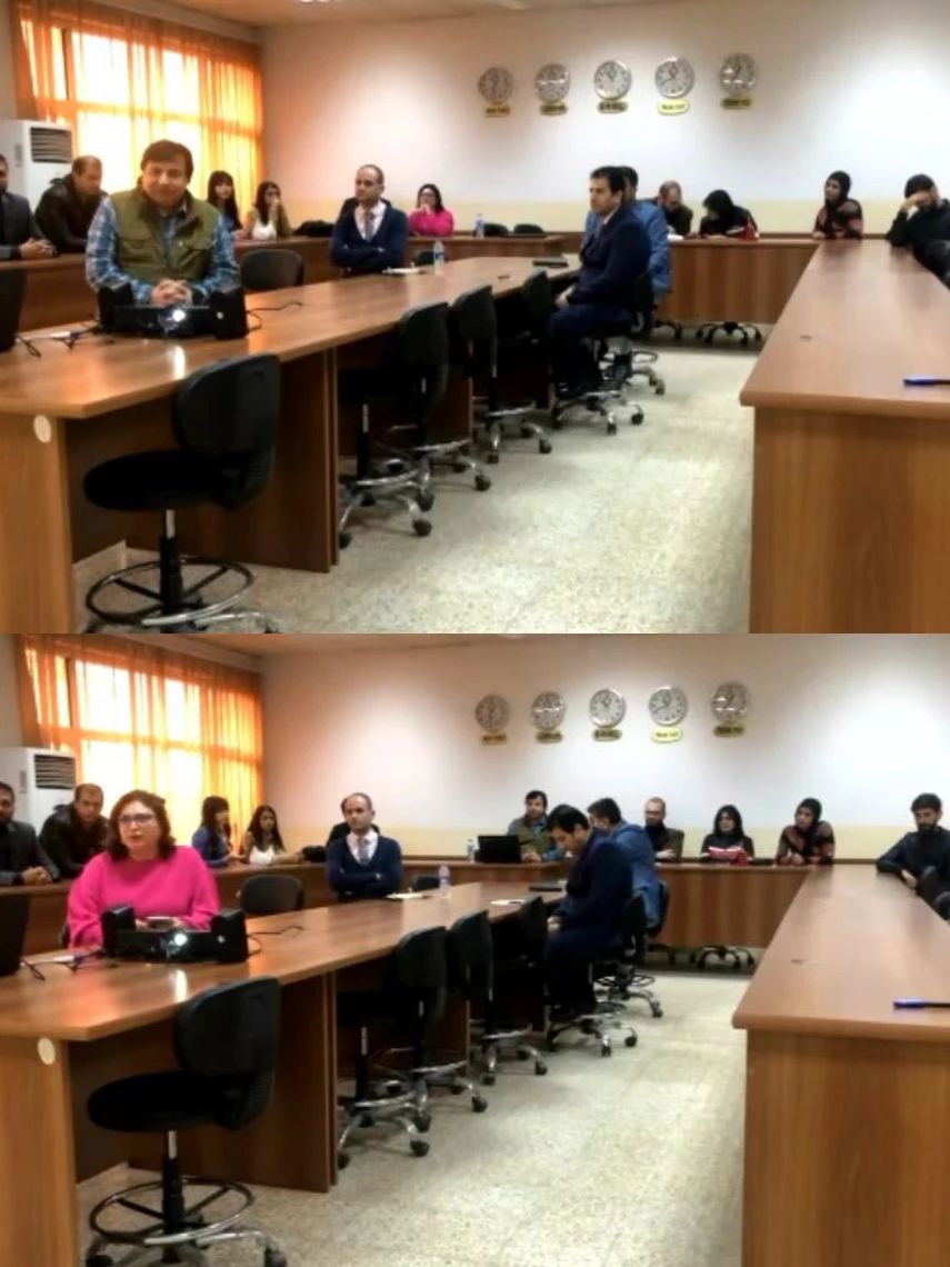 伊拉克新汉大学英语系主任Polla Tahsin和翻译系主任Sirwan Aminzadah介绍了新汉大学的院系设置、团队建设、专业发展、就业方向等内容,并着重介绍了员工专业知识技能的培养情况。他们真诚感谢此次活动提供的跨文化交流机会,表达了与公司员工深入交流的愿望,希望今后能和浙外有更多交流讨论的机会,进一步加深项目合作和专业研究。