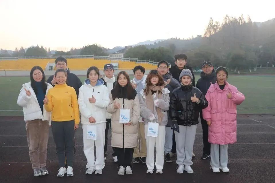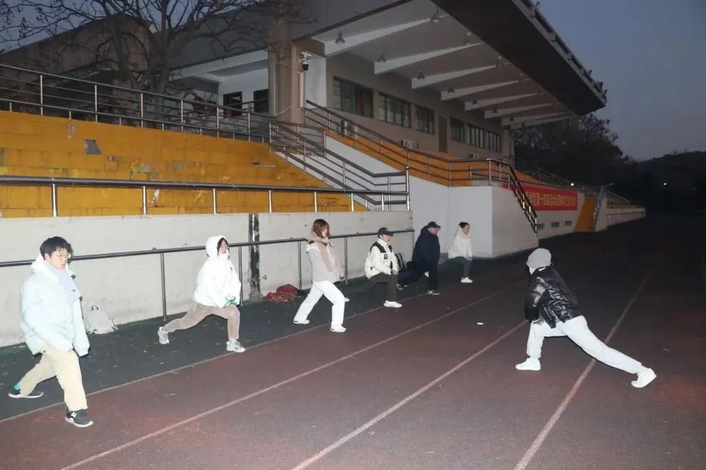 在晨跑队队长的带领下,大家进行了充分热身,随后队员们有序地踏上了跑道,开启了本年度的收官之跑!他们精神饱满、口号响亮,在整齐的步伐中迎接东方破晓。“Run for fun, Run for win!”是最强“英”口号,在一次次呐喊中,它鞭策着大家不断挑战自我、战胜自我!