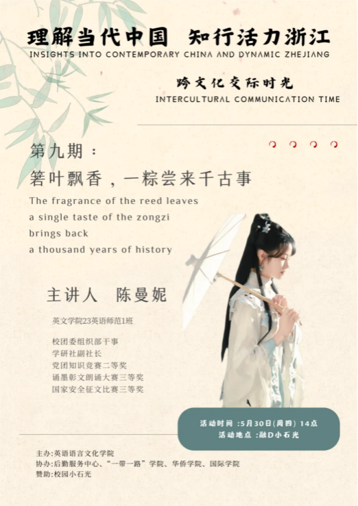 新一期跨文化活动将于5月30日举行。本期活动将围绕端午节习俗展开。端午节,农历五月初五,是中国传统节日之一,拥有深厚的文化内涵和独特的习俗。端午节的意义不仅在于纪念历史、传承文化,更在寄托人们对美好生活的向往和追求加强人们对中国文化的价值认同、增强民族自豪感和凝聚力。