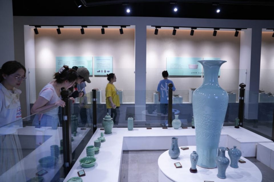 宋窑遗址公园作为县级文物保护单位,内建有龙窑、青瓷馆、品茗苑、陶艺坊、童趣园、清风廊等,其中青瓷馆是全国首家村级青瓷博物馆。队员们走进馆内,领略波光粼粼的青瓷世界。置身于其中,不禁被其独特的艺术魅力和深厚的文化底蕴所深深吸引。