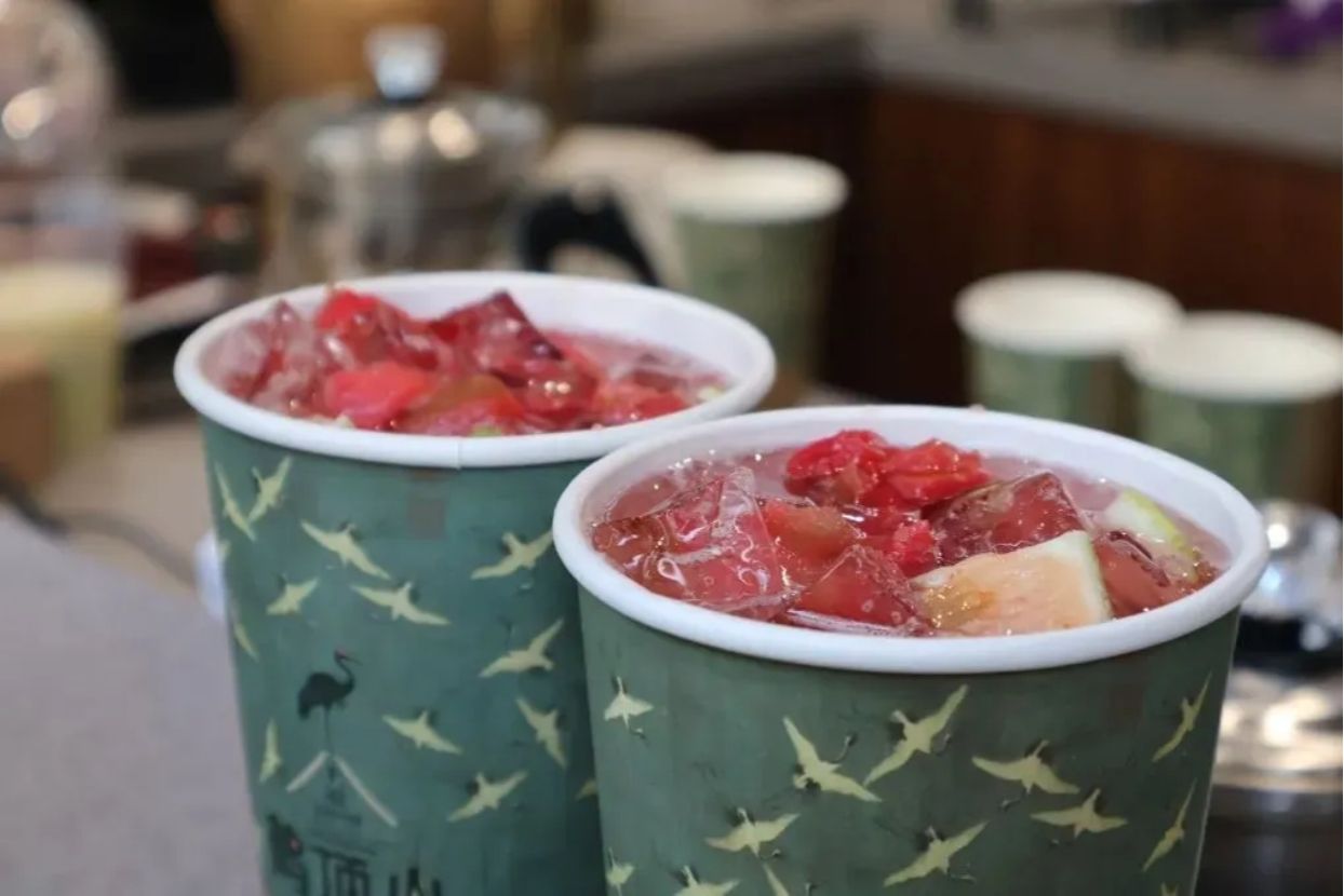 其中,中药养生奶茶就是一种结合了中草药养生和现代流行饮料的创意茶饮。为此,实践团队前去一家创意茶饮店铺“鹤顶山上茶”进行实地调研,发现店铺推出陈皮鲜柠茶、雪燕养颜鲜乳、九制黄精奶茶等养生奶茶。这些茶饮以传统中医理论为基础,结合现代食品工艺,将中药材与茶进行搭配,是可口与滋补养生的完美结合。中药养生奶茶的出现,让更多人能够以一种轻松愉悦的方式接触和了解茶与中药,为两者的现代化和国际化都提供了新的机遇,无疑是一条双赢的合作创新之路。
