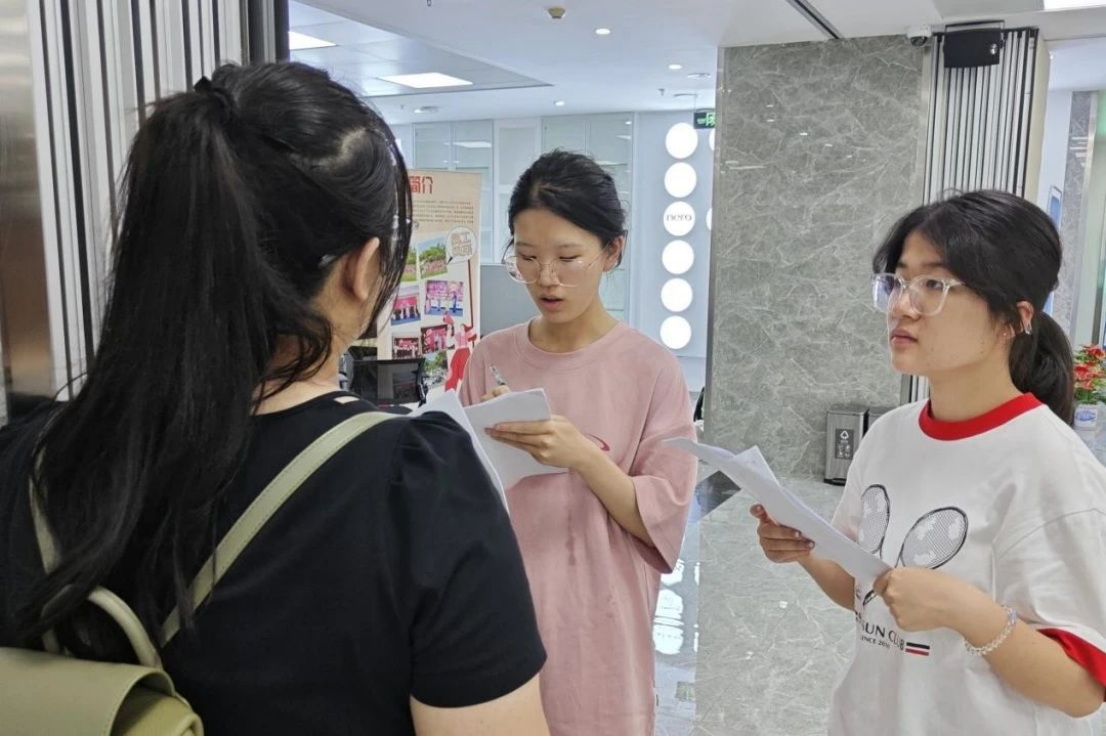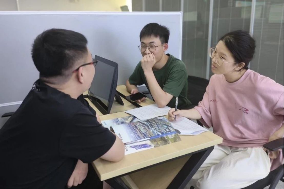 在“百日千万招聘专项行动”杭州市夏季人才云聘会的招聘现场,成员们还和一些应聘者进行了交流。在和几位来自国际经济与贸易(全英)专业的应聘者交流的过程中,成员们了解到在当前的求职市场中,特别是在对外贸易等领域,“能进行熟练的外语对话”成为应聘者需要的一块“敲门砖”。