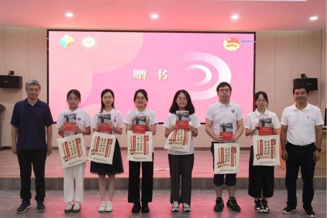 活动中,宣勇、徐勇向实践团队及新生代表赠送书籍《习近平与老员工朋友们》。现场还举行了青春接力授旗仪式。