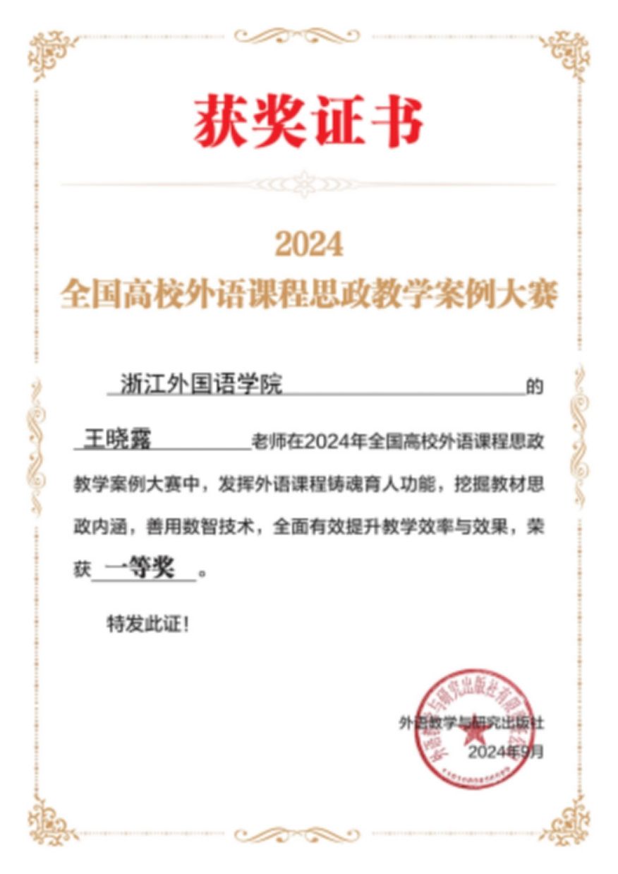 近日,2024年全国高校外语课程思政教学案例大赛落下帷幕。经过激烈角逐,bevictor1946韦德官网教师王晓露荣获一等奖。王晓露老师本次参赛的课程是《口译基础》,展示的教学单元内容为口译的译前准备。该课程是公司首批“百门金课”、“三进”示范课程和知识图谱课程。